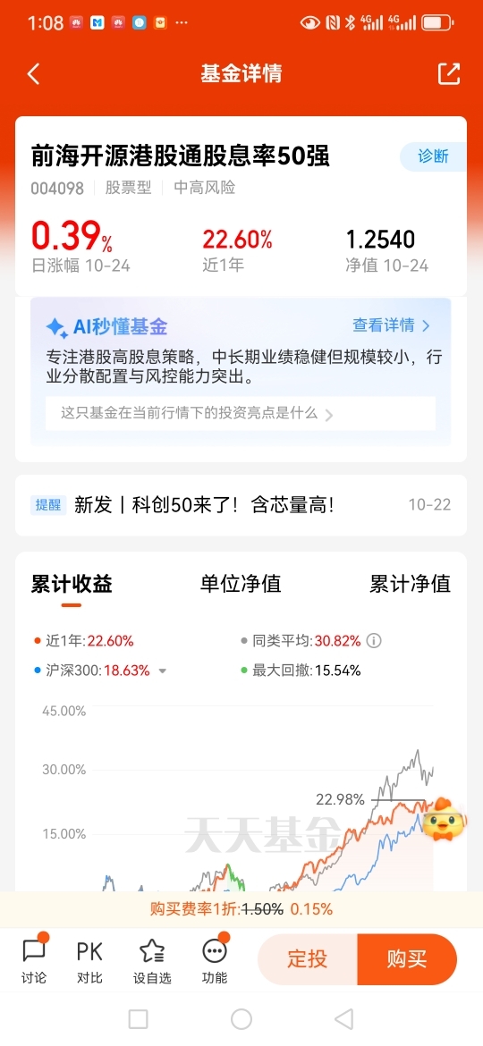 $前海开源港股通股息率50强$该基金近一年来收益率近25个点。这样的成绩非常难得
