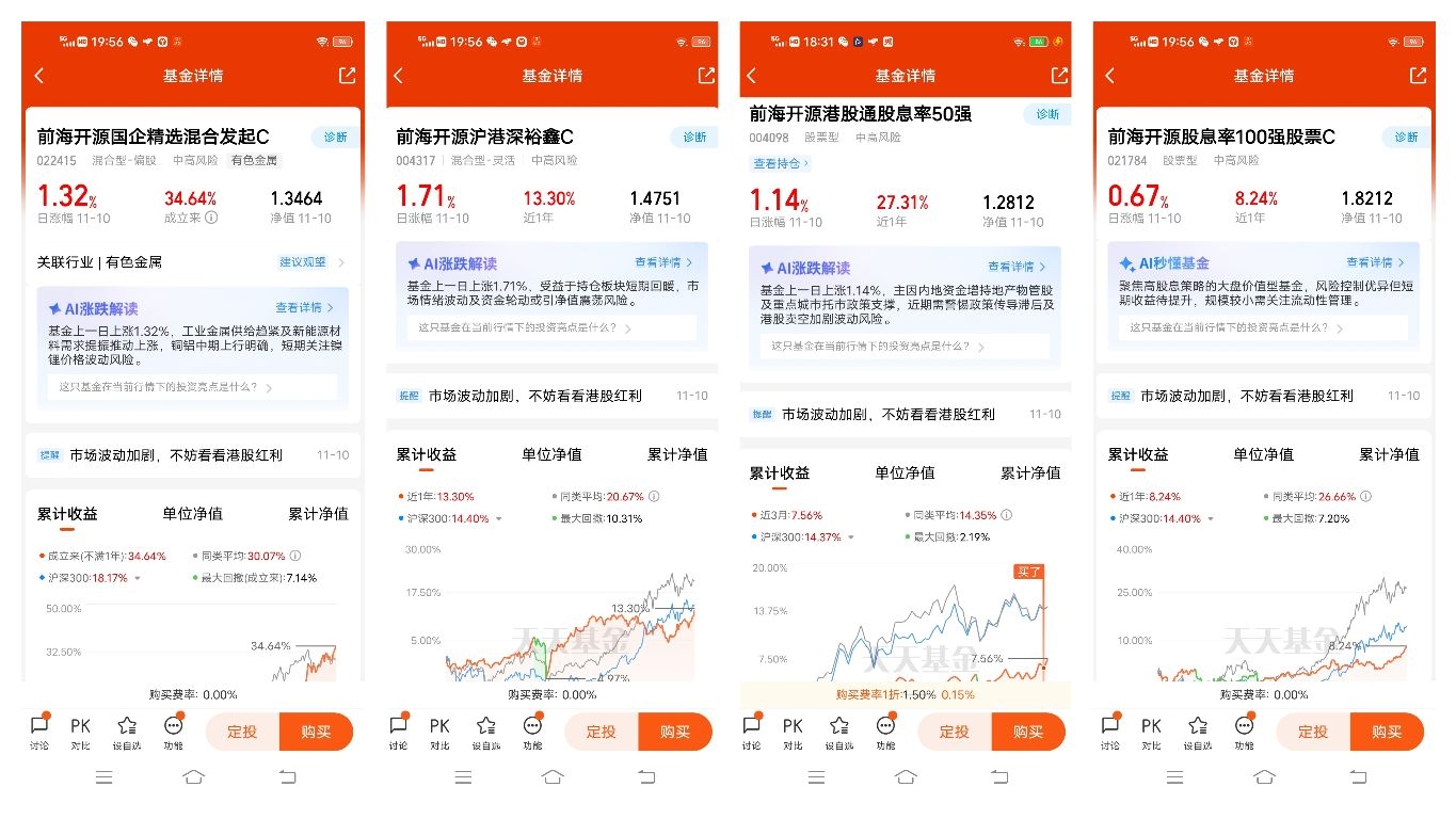 基民小虎是前海开源基金的铁粉,目前定投持有$前海开源港股通股息率50强$$前海开源黄金ETF联接A$$前海开源金银珠宝混合A$$前海开源嘉鑫混合C$ 等多只基金,收益和体验都非常好!将会继续定投、买入前海开源的基金产品,并长期坚定持有!已加自选$前海开源国企精选混合发起C$$前海开源沪港深裕鑫C$ $前海开源股息率100强股票C$ @前海开源基金