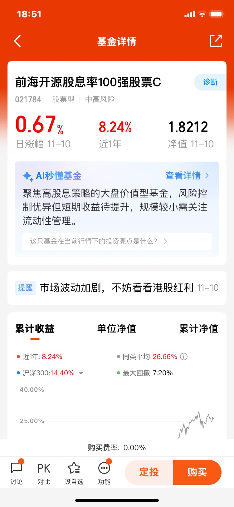 最后想说的是,投资不仅要选对品种,更要坚持长期投资理念。特别是在当前市场环境下,更需要保持理性和耐心。$前海开源港股通股息率50强(OTCFUND|004098)$作为一只专注港股红利的基金,为投资者提供了一个较好的工具,但最终的投资效果还是取决于每个人的投资纪律和心态管理。