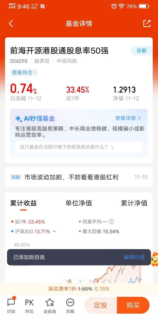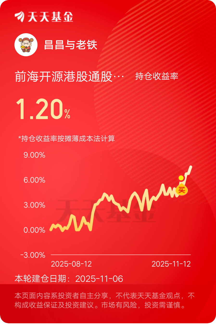 低利率时代,红利资产的价值愈发凸显,而$前海开源港股通股息率50强$ 凭借其精准的定位、科学的筛选逻辑和稳健的业绩表现,成为了我布局红利赛道的首选。相信在专业基金经理的管理下,这只基金能够持续为投资者创造可观的收益,也期待更多投资者能够关注这只优质基金,一起在红利投资中收获成长与回报!