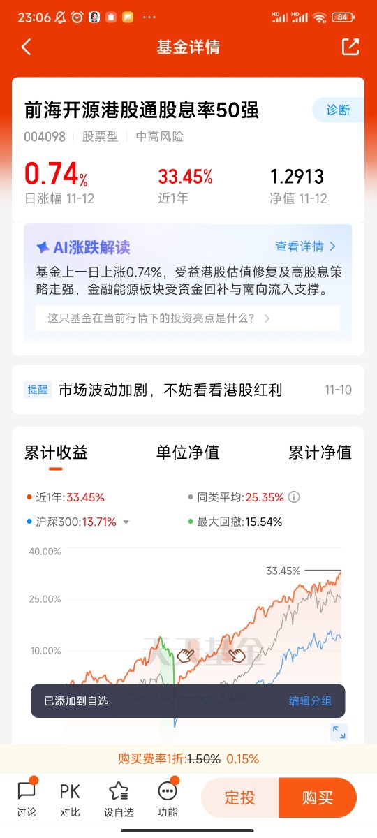 总而言之,在这个“赚钱越来越难”的时代,投资不能再追求“一夜暴富”,而是要找“稳稳的幸福”。前海开源港股通股息率50强这样的基金,就像投资路上的“靠谱伙伴”,用稳定的分红、较低的波动,帮普通人在复杂的市场里守住本金、慢慢增值。对于不想冒太大风险,又想让闲钱发挥更大价值的朋友来说,这无疑是低利率时代的优质选择。@前海开源基金