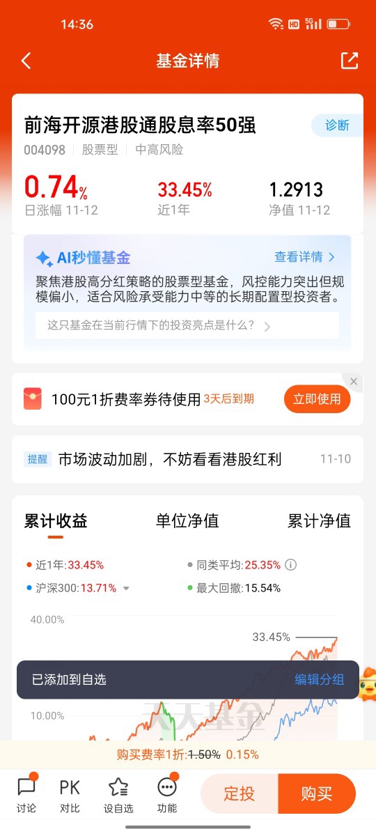 我pick$前海开源港股通股息率50强$!作为不想冒大险、还想赚点稳当收益的普通