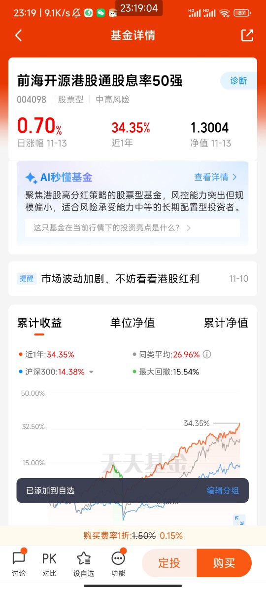 (已关注前海开源基金财富号,并将 前海开源港股通股息率50强(OTCFUND|004098) 加入自选)