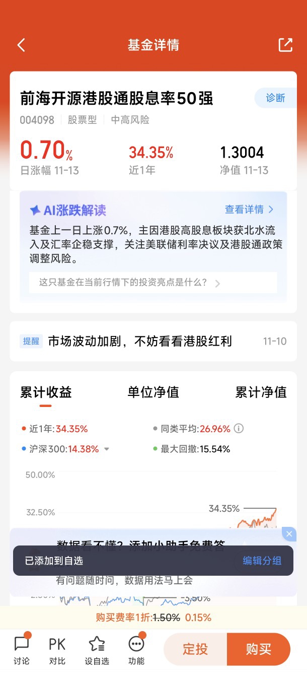 已加自选 $前海开源港股通股息率50强$ 持有前海开源港股通股息率50强:红利资产,普通投资者的“稳当选择”