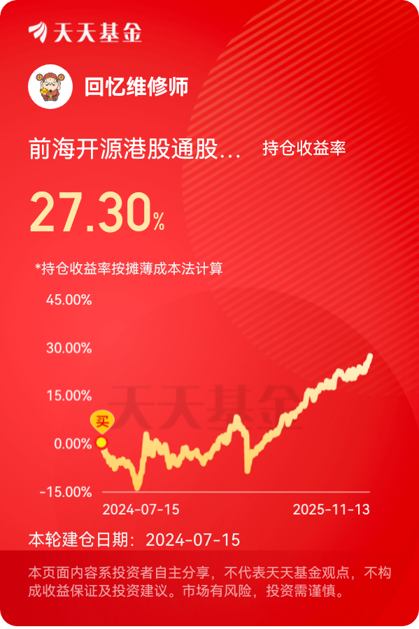 综上所述,我提前布局了前海开源港股通股息率50强(004098),因为王霞与王思岳这两位基金经理的投资经验相当丰富。@前海开源基金