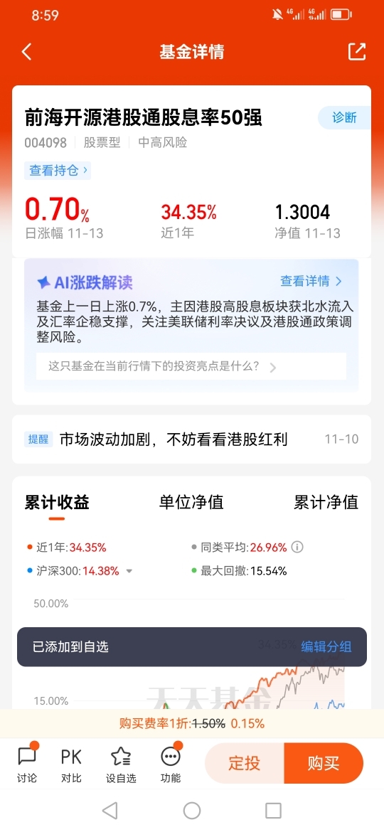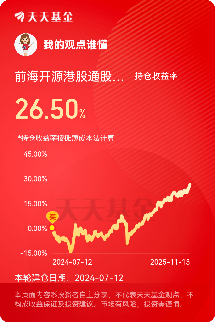 因此我选择了前海开源港股通股息率50强(004098),因为前海开源基金在投资领域相当专业。@前海开源基金