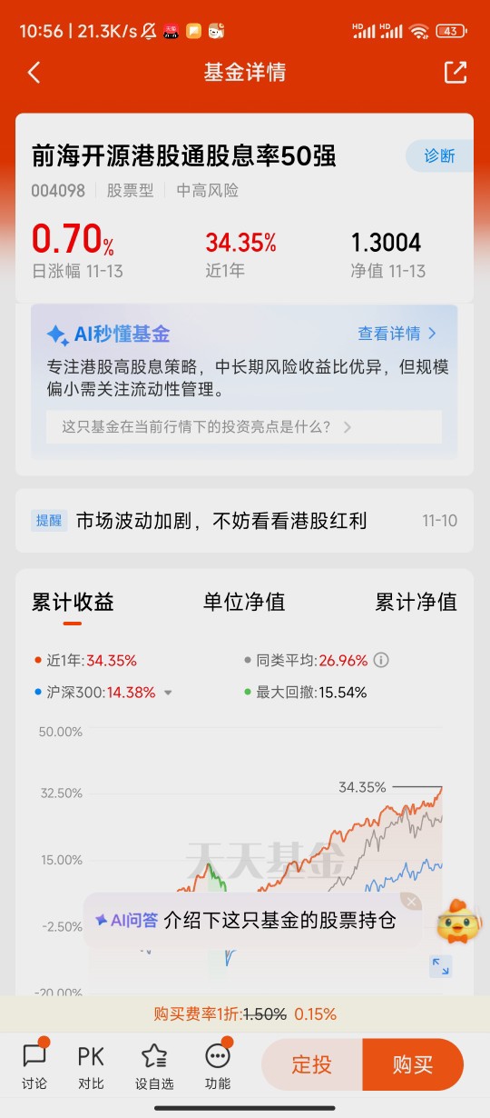 传统红利策略以高股息率为核心筛选标准,但单纯追求高股息可能陷入“价值陷阱”。当前市场环境下,红利策略正向“红利+质量”“红利+低波动”等复合策略升级。例如,前海开源港股通股息率50强基金在选股时,不仅要求股息率不低于恒生指数平均水平,还通过量化模型筛选自由现金流充沛、盈利稳定性强、商业模式风险小的标的。这种策略升级使得基金在2025年三季度实现累计收益率7.11%,超额收益达1.41个百分点。
