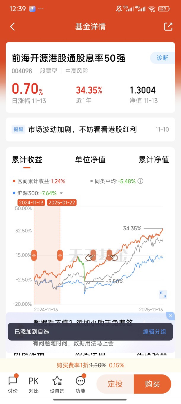 抗风险能力突出是港股红利资产的另一大亮点。2025年4月全球关税波动引发全球股市大跌时,港股红利相关指数回撤仅2.75%,远低于同类平均10%的回撤幅度,展现出极强的抗跌属性。这一特质在震荡市中尤为珍贵,前海开源港股通股息率50强通过聚焦低波动高股息标的,进一步强化了产品的稳健特质——其跟踪的核心标的多为经营成熟、现金流充沛的行业龙头,受市场情绪扰动较小,能够通过稳定的分红收益对冲股价短期波动风险。从长期业绩来看,2021年至今港股高股息相关指数年化收益超16%,显著跑赢恒生指数及多数宽基指数,实现了“稳健性+收益性”的平衡 。