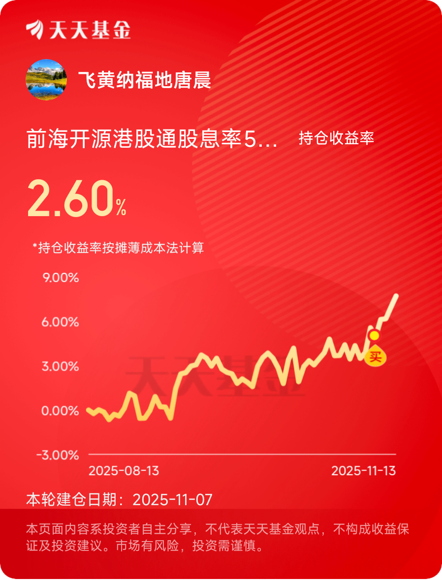在当今时代,环境多变,波动成为常态,许多人心中充满不确定性,寻找一种平稳方式,成为共同愿望,$前海开源港股通股息率50强$ 进入视野,带来一丝曙光,今天我将深入测评,用简单话语,分享内心感受,希望带来启发。#晒收益#