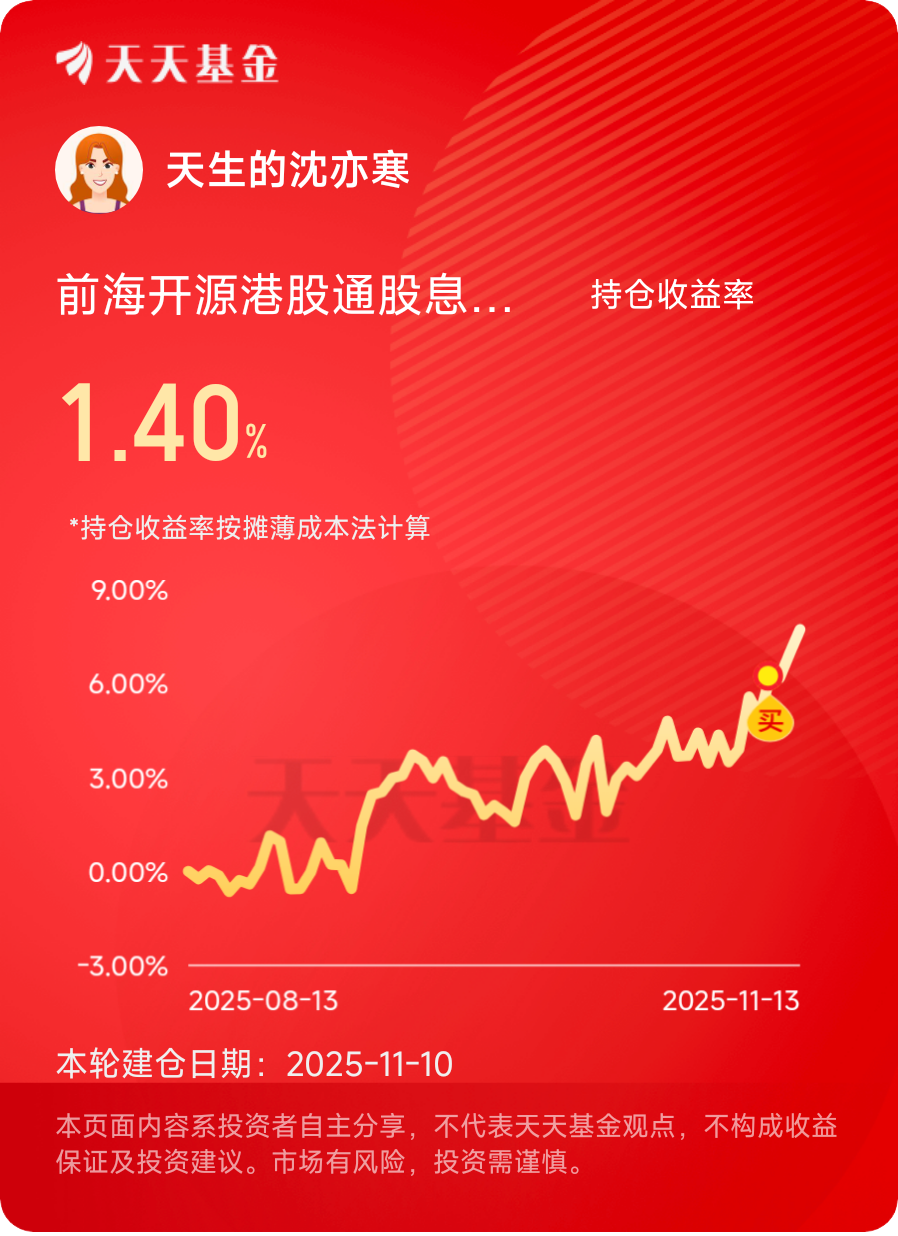 因此,前海开源港股通股息率50强不是快速获利手段,而是长期积累方式,需要耐心与纪律,对于大多数普通人,这种途径更可持续、更少压力。@前海开源基金