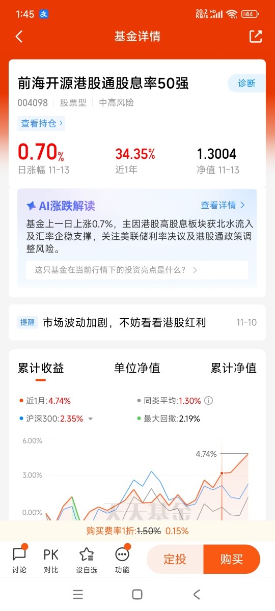 购买前海开源港股通股息率50强,可通过券商平台或银行渠道,定投方式平滑成本,建议每月固定投入,利用市场波动积累份额,降低时机选择压力。