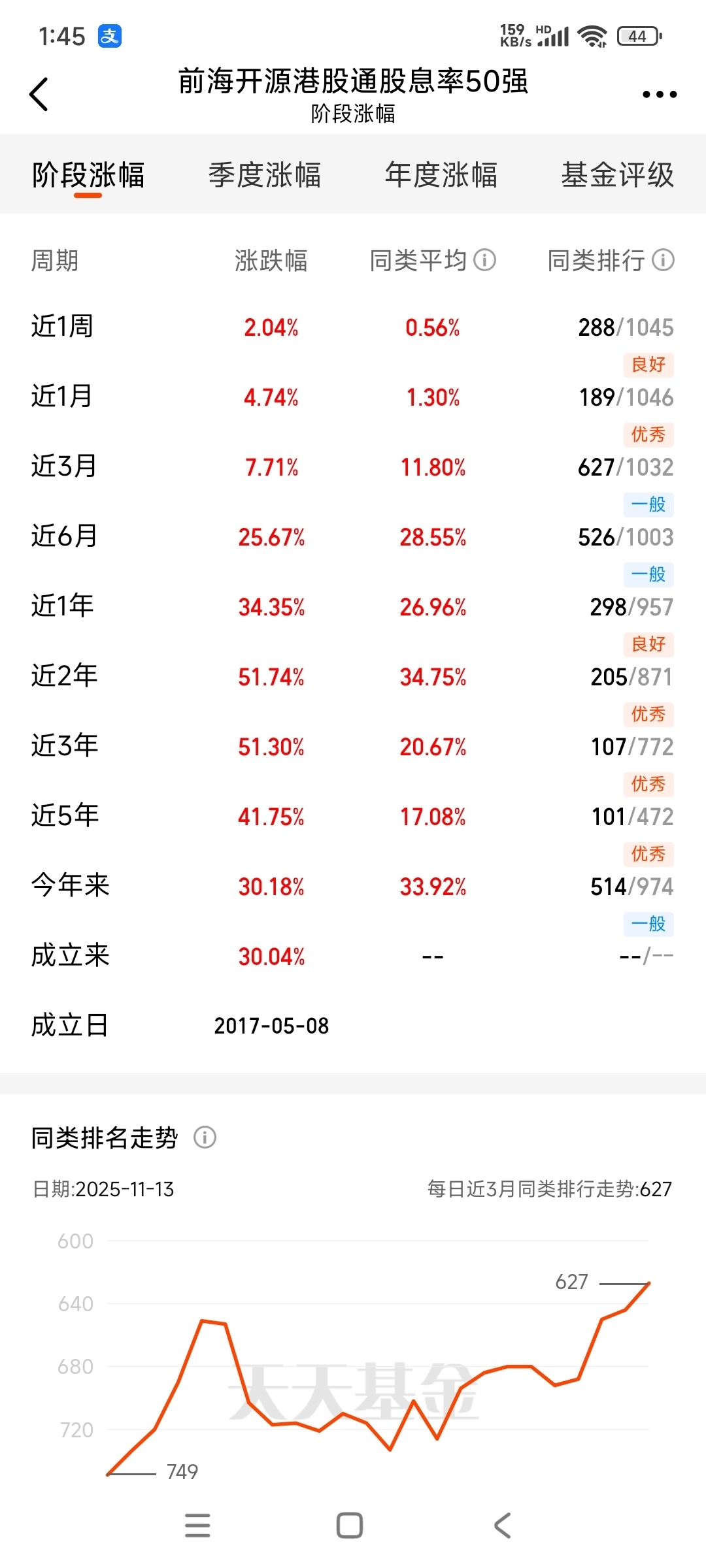 持仓结构通常偏向传统行业,如银行、公用事业等,这些领域业务模式稳固,需求刚性较强,分红能力受经济周期影响较小,前海开源港股通股息率50强基金通过行业分散,降低单一领域依赖,增强整体稳健性。#晒收益#