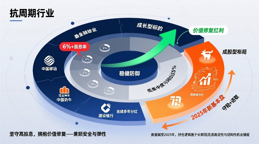 基金的持仓逻辑真的太懂职场新人了!前十大重仓股集中在金融、能源、公用事业等抗周期行业,像中国移动(股息率超6%)、中国神华、建设银行这些标的,都是连续多年稳定分红的“现金奶牛”,单一个股权重不超过5%,行业集中度也低,有效分散了风险 。但它又不固守传统红利,2025年还悄悄加仓了腾讯等成长型标的,既守住了“高股息”的基本盘,又能吃到估值修复的红利,这种配置让我每天忙工作,偶尔看一眼净值就行,完全不耽误主业。
