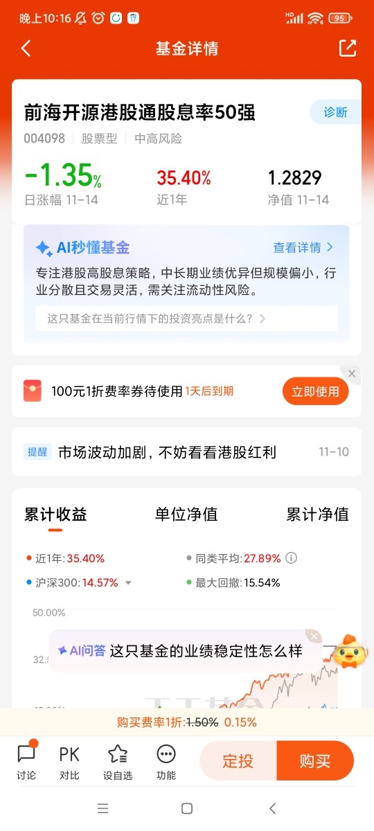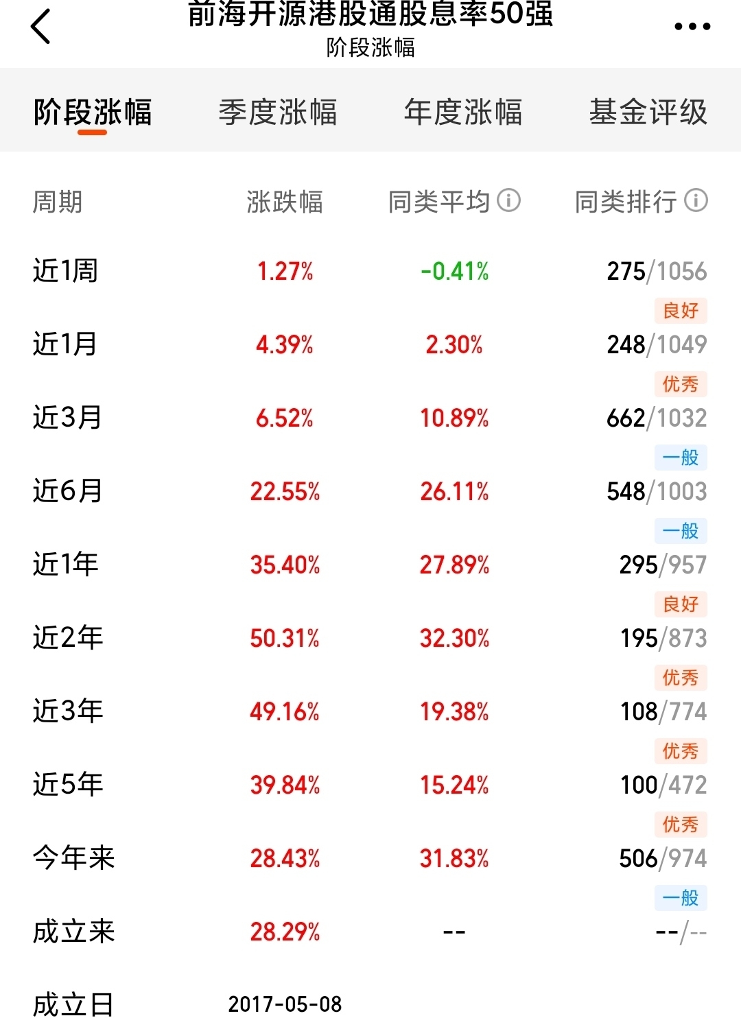 #前海开源红利家族#作为一名关注红利风格的投资者,我最近重新审视了自己的基金持仓,关注到前海开源基金旗下的港股通股息率50强基金(004098)。这只基金在我投资组合中扮演着“压舱石”的角色,尤其是在当前低利率环境下,它的配置价值更加凸显。今天我想和大家分享我对这只基金的最新观察和投资体验,希望能给同样青睐红利策略的朋友一些参考。