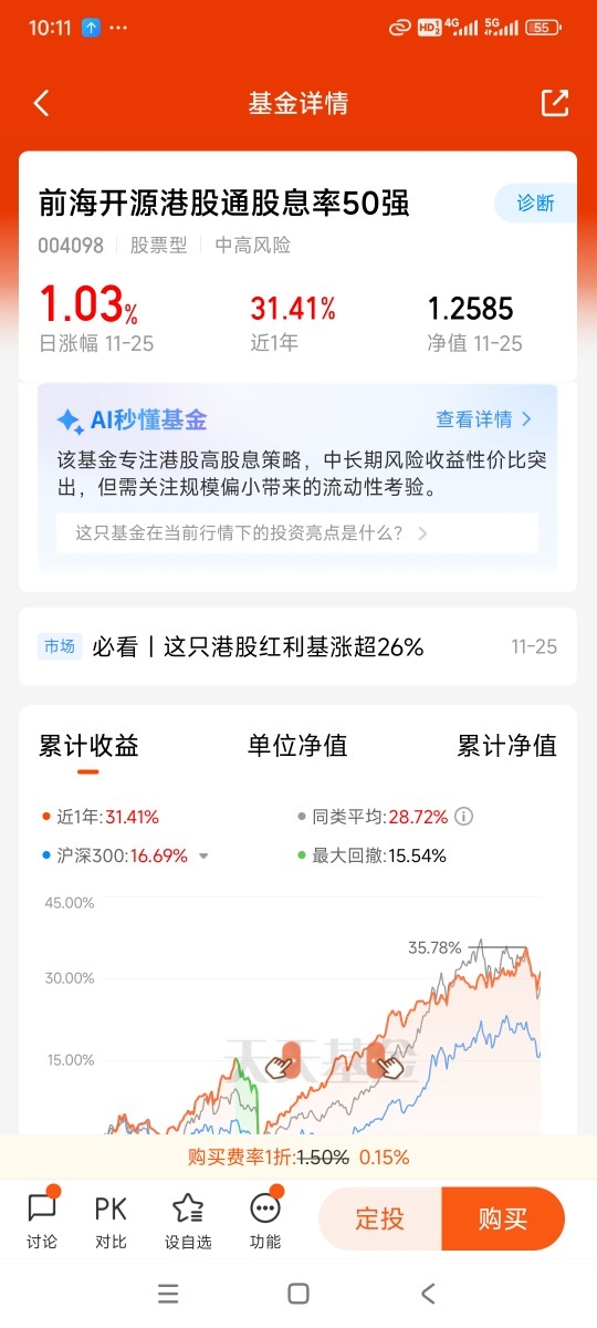 #前海开源红利家族# 我pick$前海开源港股通股息率50强$。 看好$前海开源港股通股息率50强$的投资前景,红利主要聚焦于具有稳定持续大比例分红能力的公司,这些公司大多为盈利稳定,现金流充裕,估值低,红利策略具有防御属性的优势,收益稳健安全边际高,红利投资一直以来都是权益投资的重要方向,也是成熟市场实现资本回报的主要路径。当前时点,不论是从波动率、估值还是政策来看,红利策略基金都是一个较优选择。