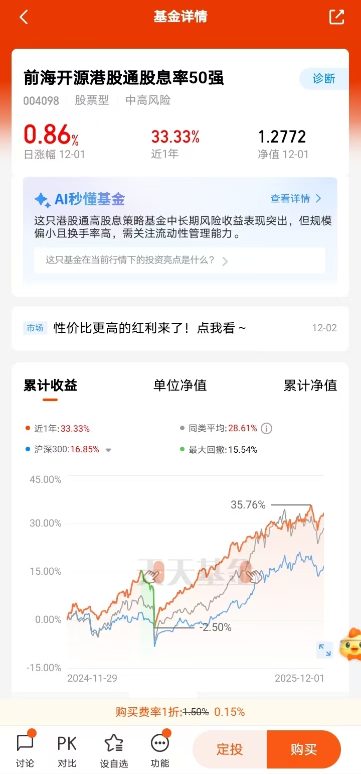 在四季度市场震荡加剧的背景下,红利资产凭借“高股息+低波动”特性成为组合的压舱石。前海开源港股通股息率50强基金通过精选港股高股息标的,为我们投资者提供了分享国际化红利的高效工具。通过股债均衡和动态调仓,实现“进可攻退可守”的投资目标。@前海开源基金
