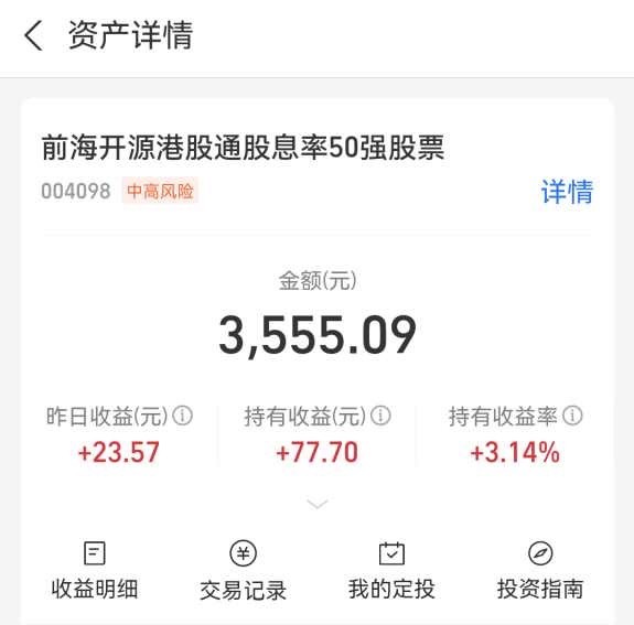 这次说走就走的旅行,不仅是一次身体的逃离,更是一次心灵的充电。而支撑这份闲适的,是前海开源港股通股息率50强股票基金帮我赚取的20%收益,虽不多,也就只有2000多元。但是这笔钱,是市场对我耐心持有的回馈,更是对基金经理专业管理的肯定。三天悠闲的行程,这2000多元的收益支付起来绰绰有余,无论是尝一尝那“名声在外”的西湖醋鱼,还是租辆自行车沿着湖边“悠悠然地骑行” ,都无需顾虑,让这份忙里偷闲的惬意更加纯粹。