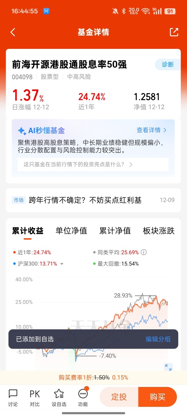 站在当前资产配置视角,红利资产并非简单的“固收替代”,而是权益组合中不可或缺的平衡工具。在“成长+红利”的哑铃型配置策略中,前海开源港股通股息率50强 能够有效对冲成长股的波动风险,同时在市场风格切换时捕捉估值修复机会。对于追求长期稳健收益的投资者而言,该基金既适合作为底仓长期持有,享受复利增值;也可作为阶段性配置工具,把握港股红利板块的估值修复行情。