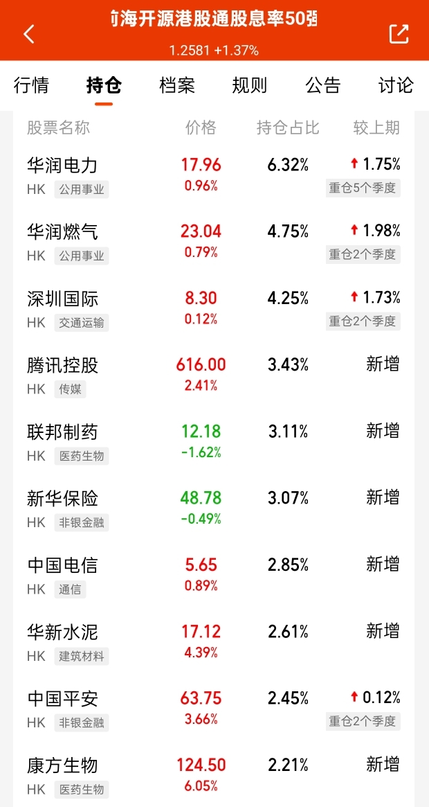 #前海开源红利家族# 我pick$前海开源港股通股息率50强$