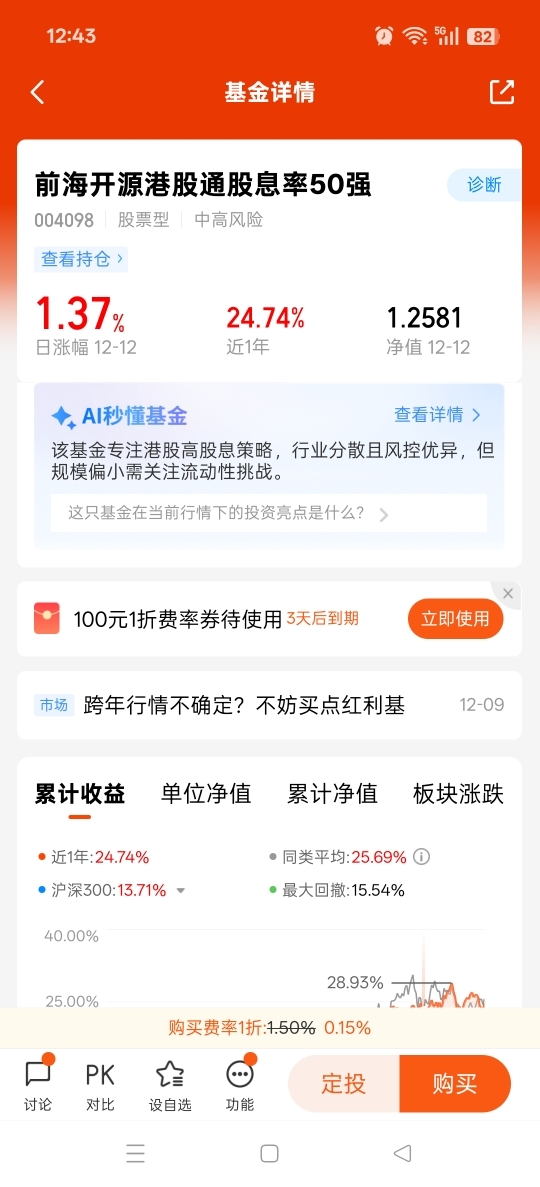 在红利基金中,我关注并持有前海开源港股通股息率50强: