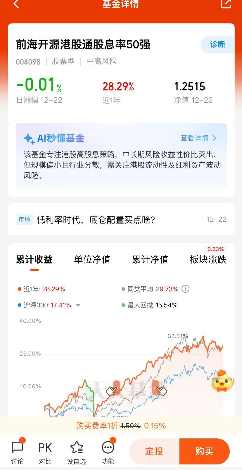 前海开源港股通股息率50强基金在成本控制和投资便利性方面也具有优势: