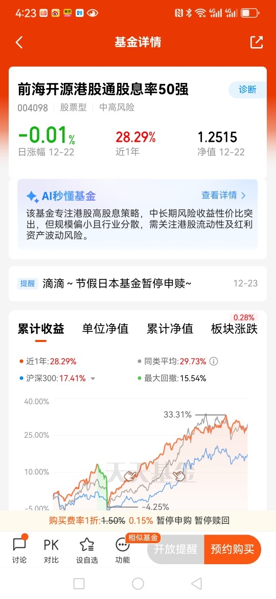 幸好这次我选择的是$前海开源港股通股息率50强$ ,追踪的是恒生港股通高股息低波动指数。