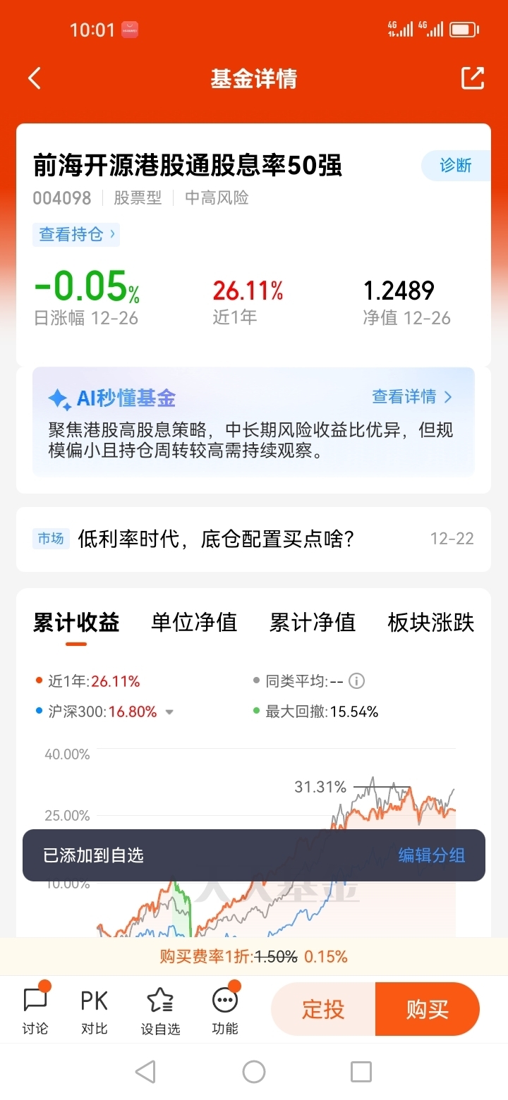 红利类资产我还是比较喜欢的,因为它的防御能力很强,但凡可以持续高分红的公司,它们通常有着非常稳定的现金流和盈利能力,而这样的公司往往是可以提供给投资者非常高的投资安全垫的,为了进一步证明这一点,我把这些公司每个季度的季报都翻阅了一遍,果不其然,它们的财务的确是非常扎实的。而且红利代表着对应的公司分红慷慨,这类公司往往是高股息的公司,持有这类的公司,即使它们的股价出现一定的调整,但如果每年都可以分给我们稳定的股息的话,那么很多保守型的投资投资者是非常愿意坚定持有的。综上所述,我提前布局了前海开源港股通股息率50强(004098),因为王霞与王思岳这两位基金经理对于红利类资产有着相当深入的研究。@前海开源基金