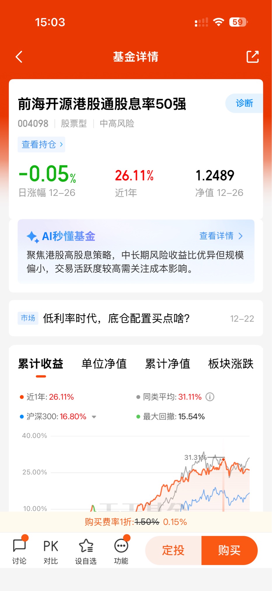 我自己呢,早就把前海开源港股通股息率50强股票这只红利主题基金当成了资产配置中的底层资产。为啥选它?实话实说,不是图它一夜暴富——这种好事儿我早就不幻想了——而是看中它“攻守兼备”的特性。市场刮风下雨的时候,它能帮我稳住阵脚;行情回暖时,它也能跟着喝口汤,细水长流地攒收益。