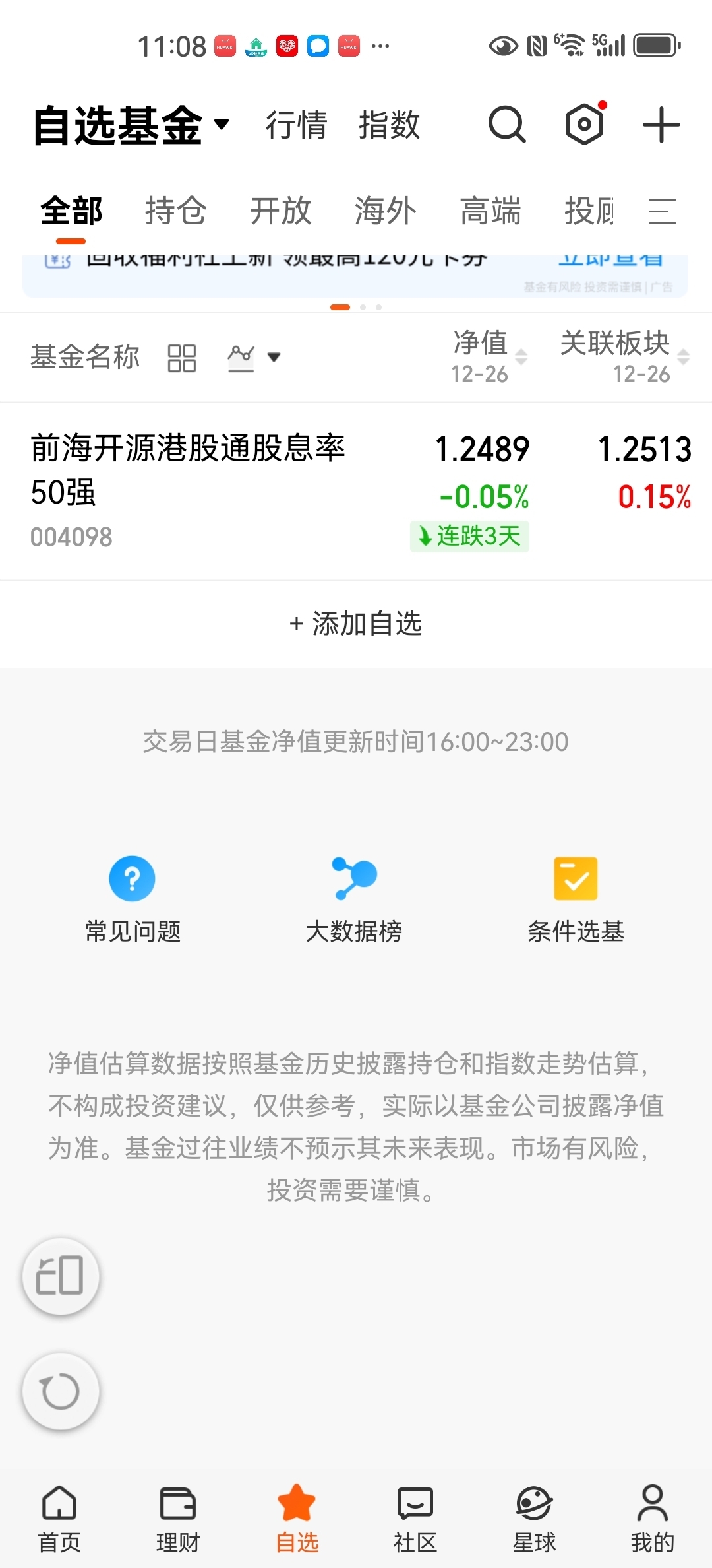 我很喜欢港股,因为港股估值远低于大A,再加上香港市场可是国际化市场,虽然波动大,同样戴维斯双击的收益就会大于大A,同样做红利,为什么不选一个性价比更高的呢?前海开源港股通股息率50强确实具备我的要求,趁着下调可以逐步建仓@前海开源基金