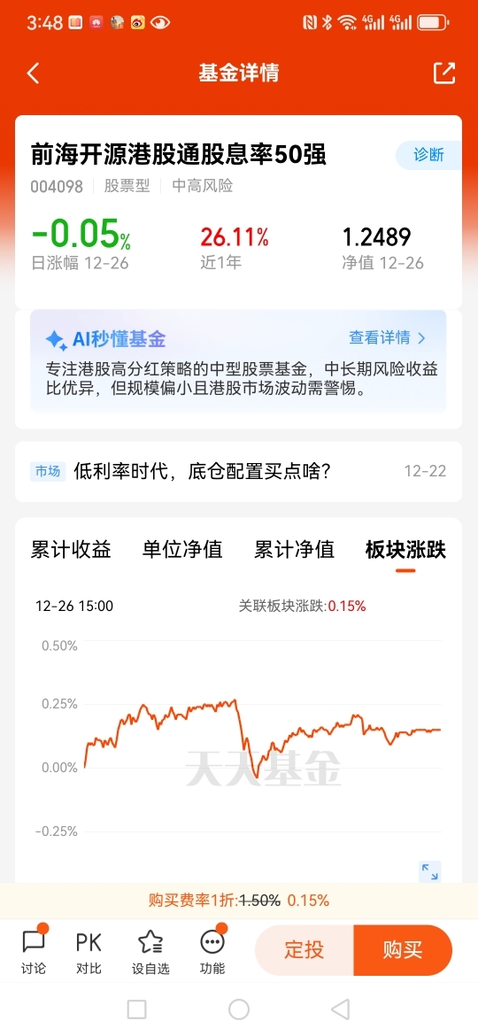 $前海开源港股通股息率50强$ 目前,港股市场整体估值较低,更具性价比,潜在上涨空间较大,$前海开源港股通股息率50强$ 主要通过港股通跟踪港股高股息个股,可以分散A股市场单一风险,增强组合韧性!近一年上涨接近30%,业绩表现相当不错,它受益于两地市场互联互通机制,流动性较好,且受国内政策鼓励,长期配置价值显著。 并且在市场震荡期表现稳健,防御属性突出,比较适合想要追求稳定又想获得不错收益的投资者!