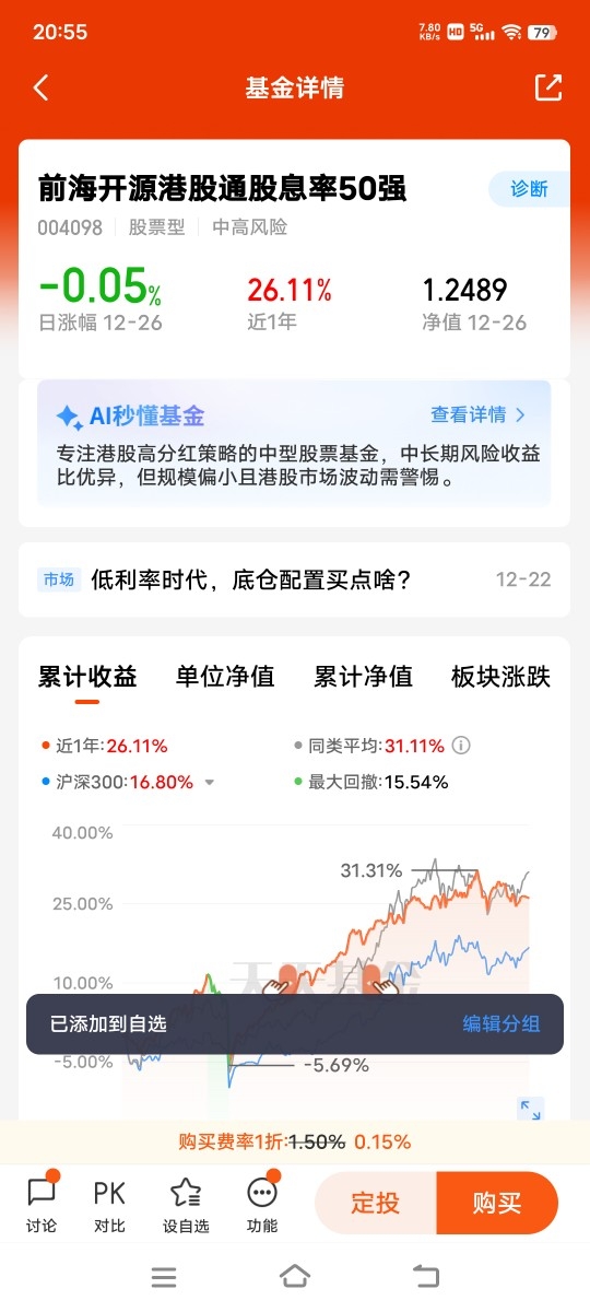 $前海开源港股通股息率50强$ 在当前低利率环境下,稳健收益资产愈发稀缺,前海开源港股通股息率50强基金近一年26.11%的收益,显著跑赢A股红利板块,印证了港股红利的配置价值。港股市场长期处于估值洼地,红利资产平均股息率远超A股同类标的,叠加成分股多为现金流稳定的行业龙头,分红意愿持续强劲,形成“低估值+高股息”的双重安全垫。当前港股情绪回暖至贪婪区间,南向资金与外资持续流入,估值修复动能充足。对于追求稳健回报的投资者而言,这类基金既能分享分红收益,又能把握估值修复机会,成为资产组合的“压舱石”。@前海开源基金