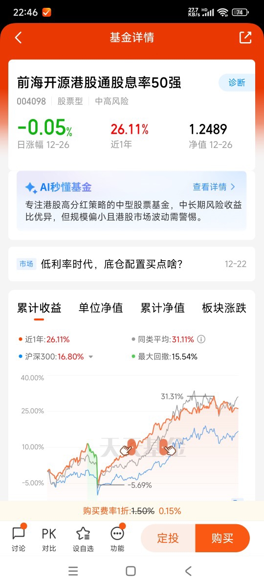 3. 符合长期配置逻辑。我希望底仓能降低组合整体波动、追求长期稳健增值。该基金策略纯粹,专注于精选50只港股高分红股票,具备“类债券”的防御属性,能在市场震荡期充当“压舱石”。