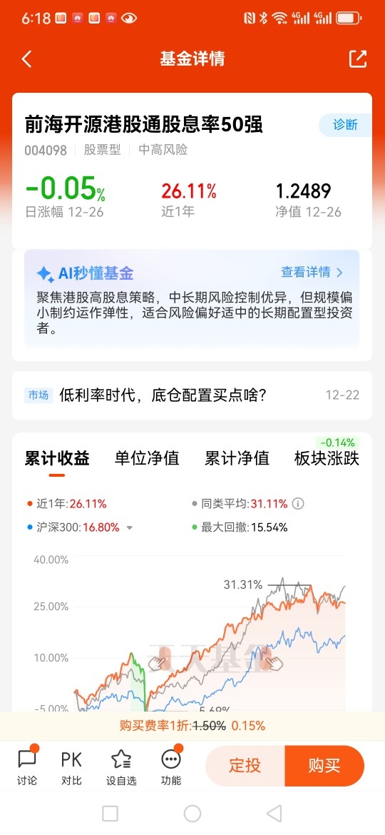 $前海开源港股通股息率50强$ 红利指数主要挑选那些股息率高、持续分红、且现金流稳定的公司作为标的。这种策略比较适合稳定收益的投资者,特别是在当前低利率的市场环境下,高股息资产显得更有吸引力。