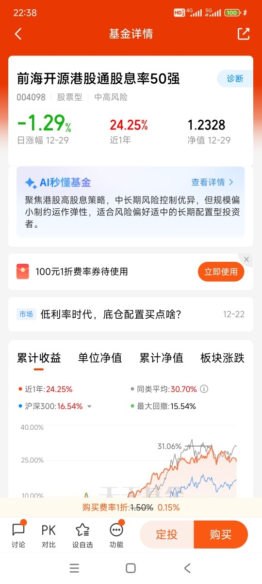 红利策略的核心是“稳”不是“快”,别指望它像热门赛道那样短期暴涨。想布局的话,不用纠结于短期涨跌,选择$前海开源港股通股息率50强$ ,作为长期配置的一部分,慢慢享受企业分红和估值修复的双重收益就好。@前海开源基金