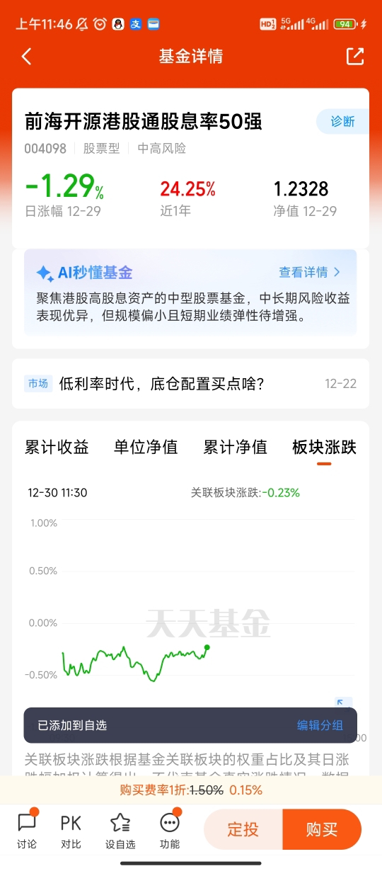 $前海开源港股通股息率50强$前海开源港股通股息率50强基金(004098)对红
