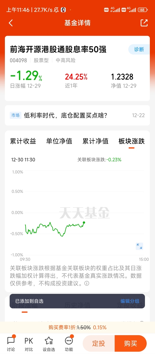 $前海开源港股通股息率50强$ 前海开源港股通股息率50强(004098)是聚焦港股高分红企业的代表性产品,截至2025年12月29日,该基金近12个月收益率达24.25%,展现出红利资产的稳健收益能力。