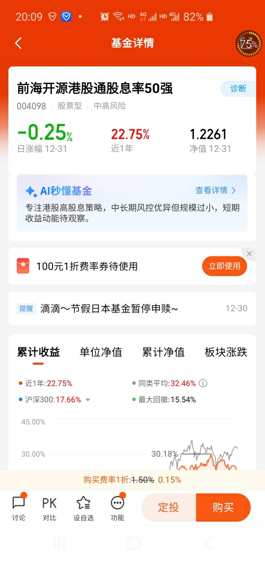 我已持有部分红利资产,近期正在关注:$前海开源港股通股息率50强(004098)$。本基金专注港股通高分红标的,持仓公用事业、非银金融、交通运输等高股息行业,2025年收益达到22.75%,非常稳健。
