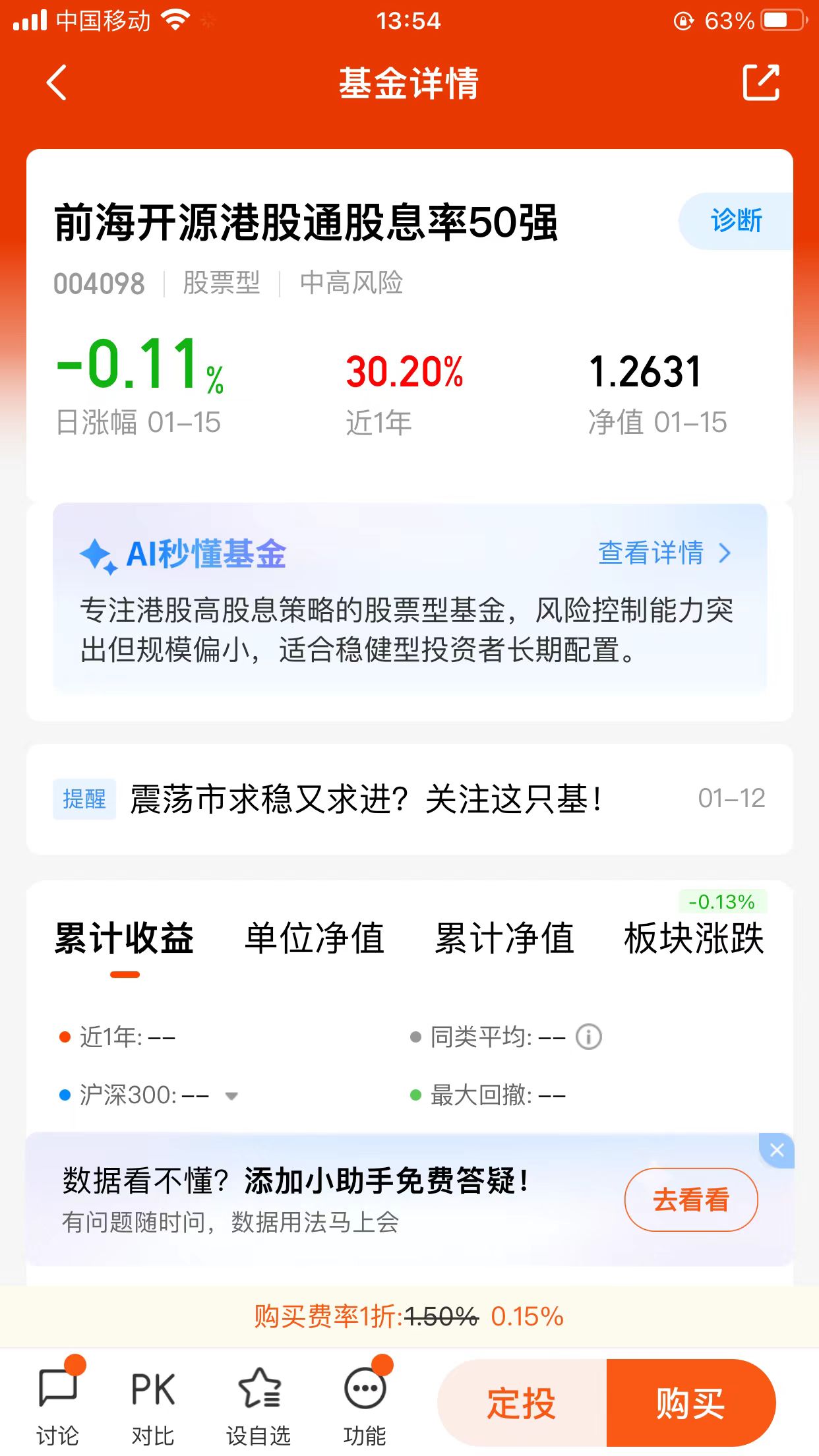 $前海开源港股通股息率50强(OTCFUND|004098)$