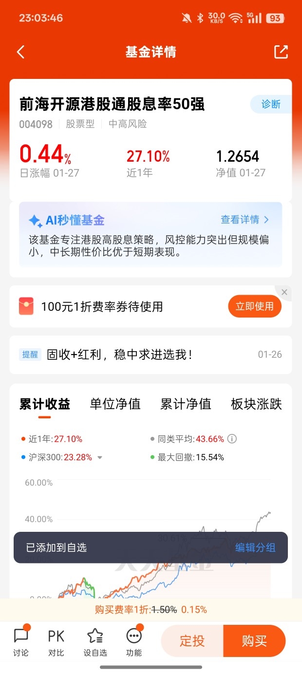 已将前海开源港股通股息率50强火速加自选!2026年震荡市,红利资产就是我的“定