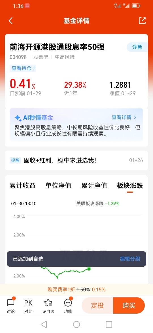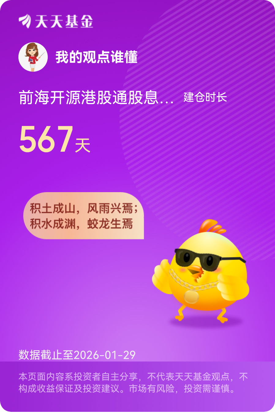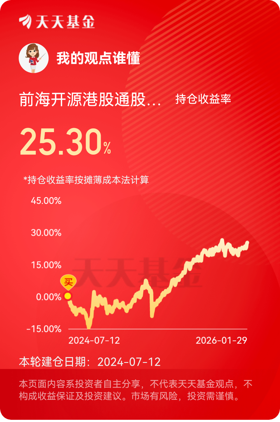 因此我选择的是前海开源港股通股息率50强(004098),因为前海开源基金在投资领域相当专业。@前海开源基金