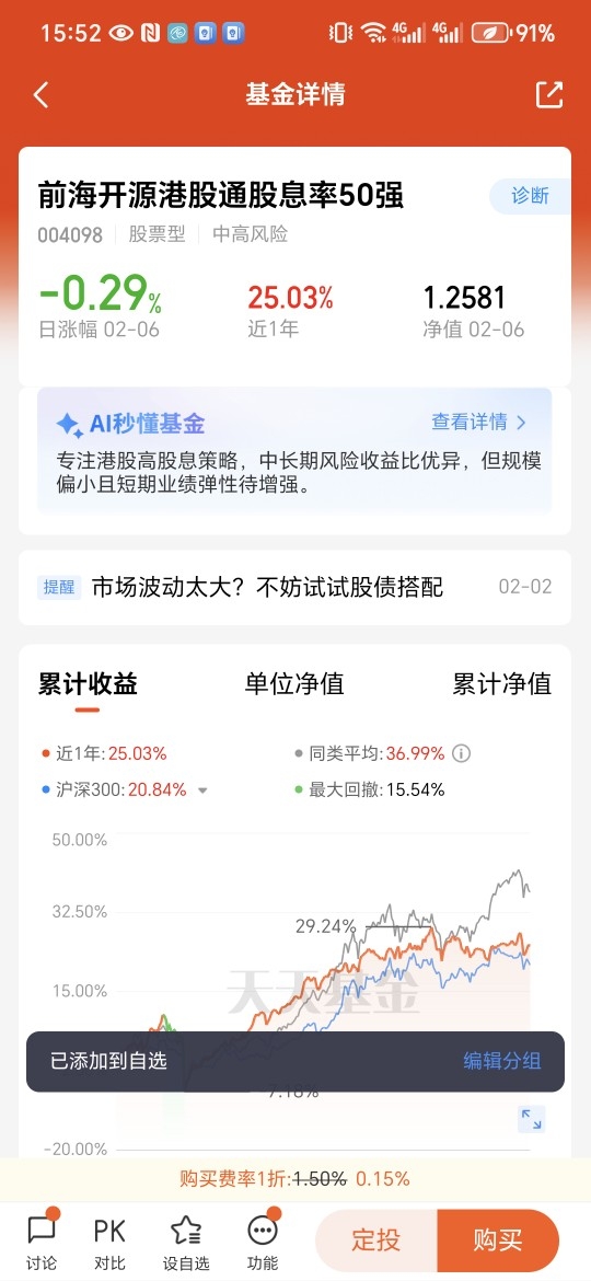 从配置逻辑来看,红利资产更适合作为“核心-卫星”组合的压舱石,而非博取短期收益的工具。我的核心仓位采取定投策略,将其视为“类固收+”资产,只要股息率维持在4%以上就坚定持有,赚取稳定分红;卫星仓位则根据AH股溢价指数进行轮动,当港股红利涨幅过大导致性价比下降时,及时切换回A股红利低波 。这种方式既契合红利资产“赚时间钱”的本质,也能规避拥挤交易带来的回撤风险——2025年港股红利的暴涨已预示2026年波动会加大,短期涨幅超10%时暂停定投、回调后再接回,是更理性的操作。