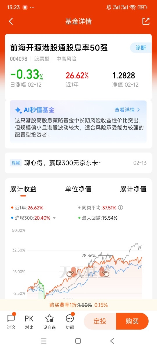 看好$前海开源港股通股息率50强$的投资前景,红利主要聚焦于具有稳定持续大比例分红能力的公司,这些公司大多为盈利稳定,现金流充裕,估值低,红利策略具有防御属性的优势,收益稳健安全边际高,红利投资一直以来都是权益投资的重要方向,也是成熟市场实现资本回报的主要路径。当前时点,不论是从波动率、估值还是政策来看,红利策略基金都是一个较优选择。