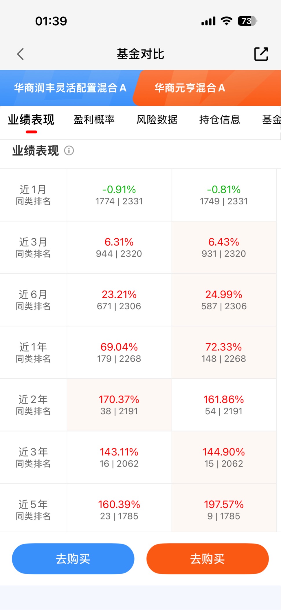 从业绩数据和风险数据。元享都比润丰好。当初买元享出发点是份额20亿比润丰60亿好调头。千问却说买润丰好。大家怎么认为。