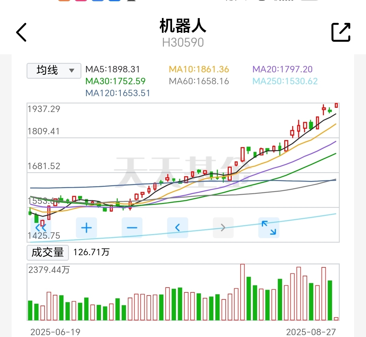 今早开盘三分钟,机器人走出了要创新高的姿势。不管今天涨不涨,就一句话再谈机器人:鸭子张嘴后,会有一段沿5日线逐步上升的鸭嘴。这句话,之前谈了几次了,只要大盘不出现大问题,这句话就是机器人的趋势。所以,我不以一时一刻论英雄,坚决重仓机器人。不管别的板块多牛,机器人的仓位我不挪动,因为这是我认知范围内的投资。在牛市复杂的喧闹声中,赚认识范围内的钱就好。