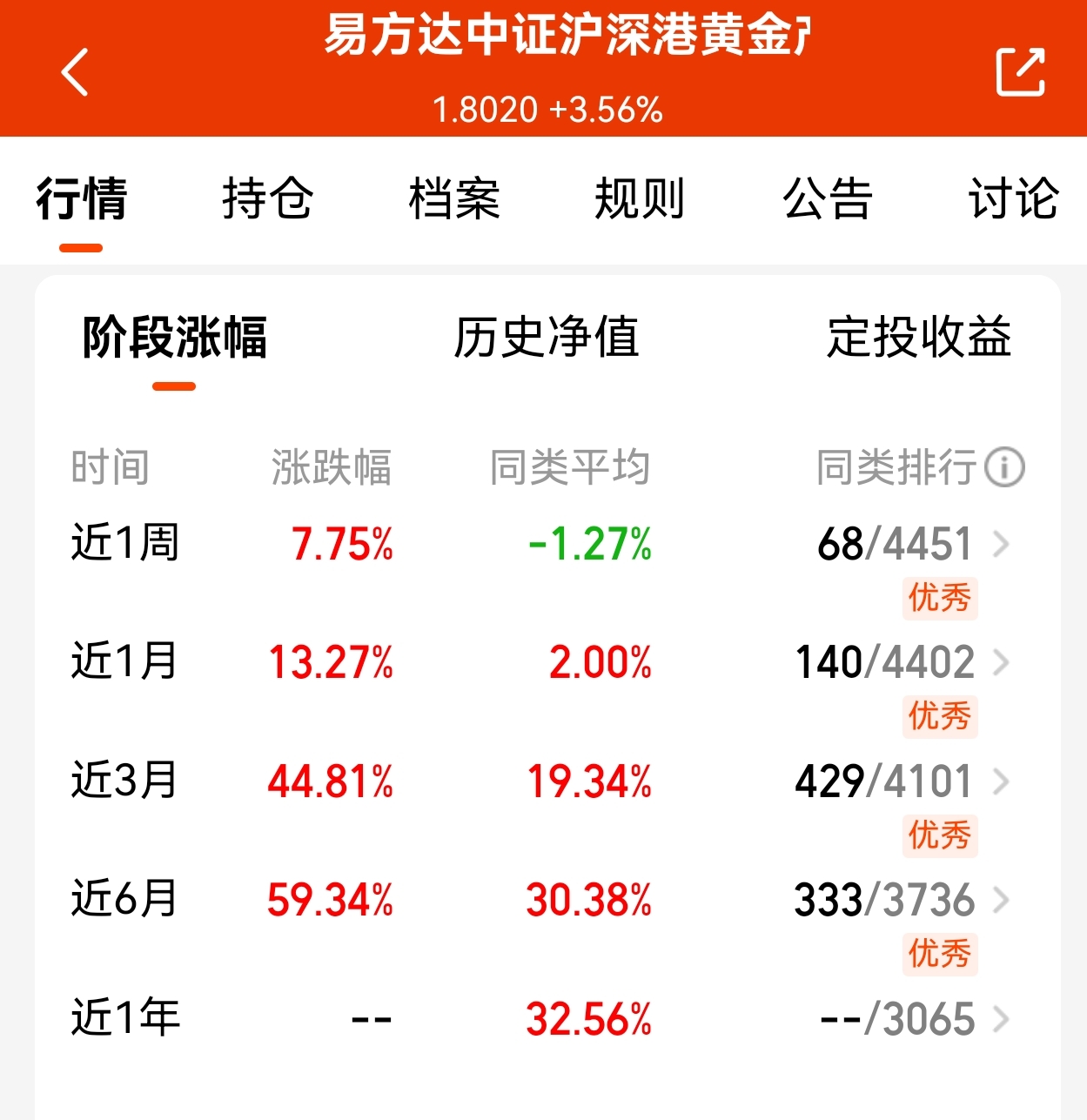 国际金价历史性突破4000美元/盎司,年涨幅超50%,领跑全球主要资产。在这场黄金盛宴中,如何布局才能不仅跟上行情,更能放大收益?易方达中证沪深港黄金产业股票指数发起式C(021363) 以其独特的定位,为我们提供了一个关键答案。