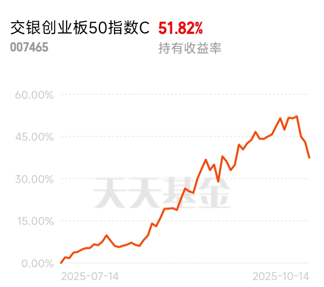 $交银创业板50指数C$ 持仓收益率超过51%,今年整体不错,继续看好它后续表现!
