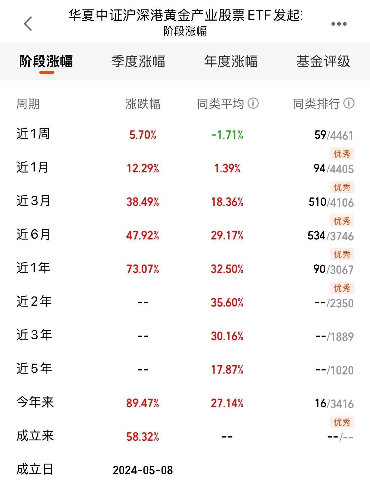 近一年收益73%+,近一周收益5.72%,基于地缘不确定性+美元走弱(美联储降息)+众央行持续增持这三大逻辑支撑,布局$华夏中证沪深黄金产业股票ETF发起式联接C$是最机智的选择