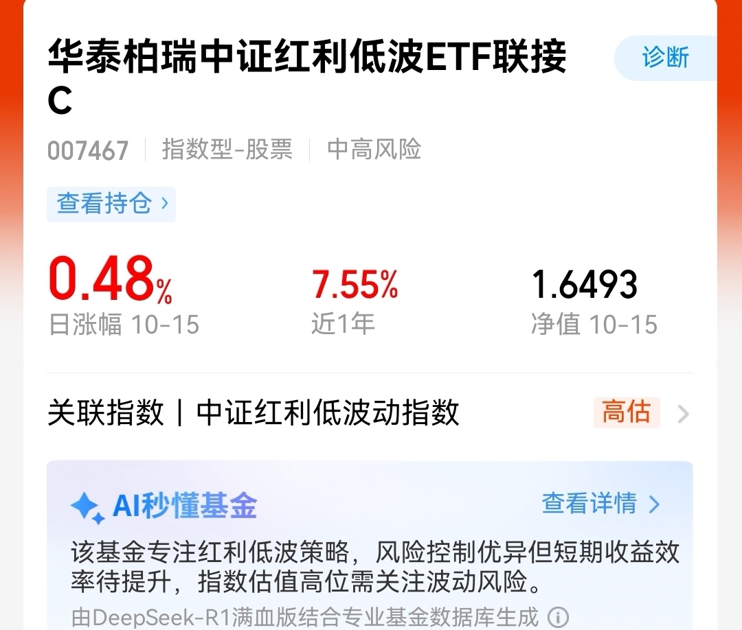 $华泰柏瑞中证红利低波ETF联接C$ 连续6日净值创新高,证明价值风格正在回归。低估值与高股息的双重优势逐步被市场发掘。