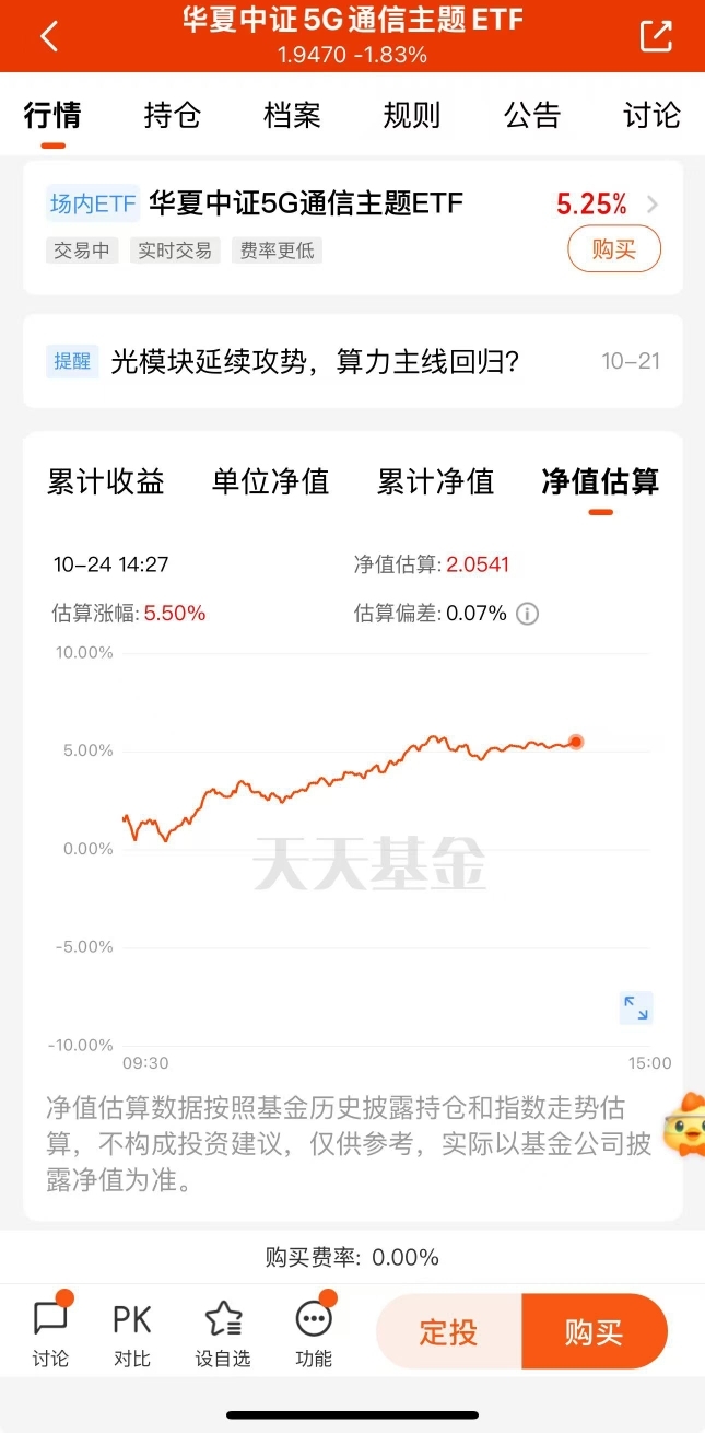 5G通信和半导体确实有后发潜力,当前上涨超5%,上涨动能足,持仓配置近一年更是有71.32%的好收益,$华夏中证5G通信主题ETF联接C$真是惊喜多多