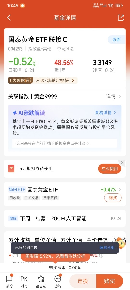 我将坚定定投。$国泰黄金ETF联接C$ 持续支持。